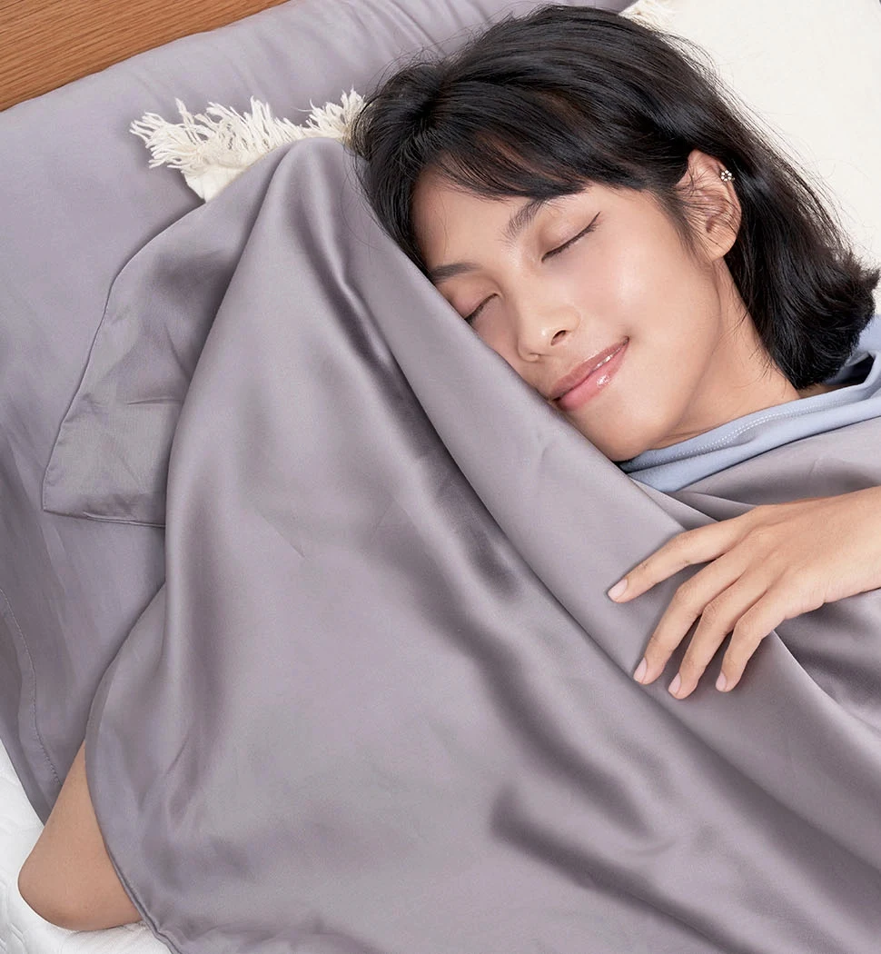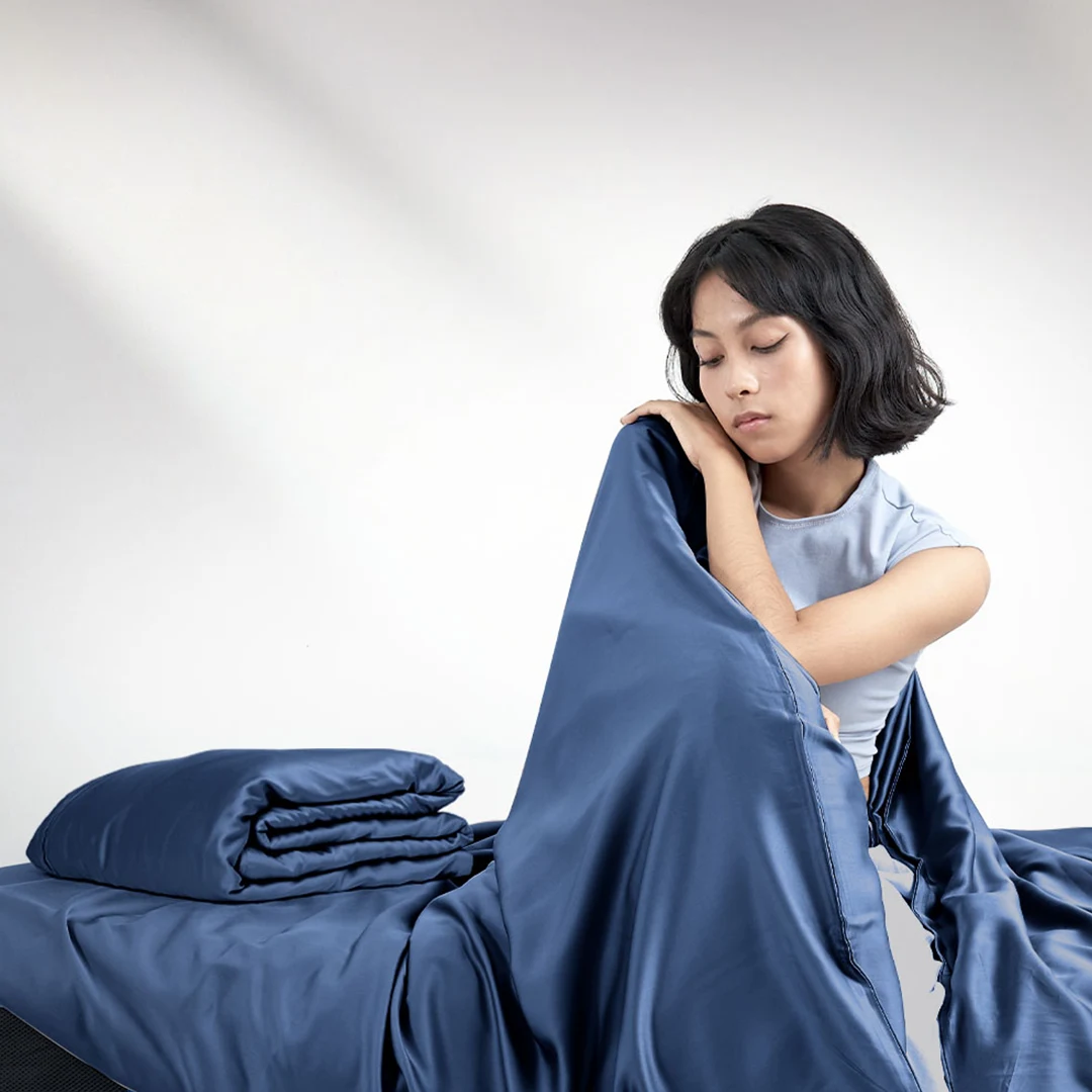 100% 純天絲,觸感絲滑親膚,天然涼感,透氣清爽,享受雲朵般輕盈自在的睡眠